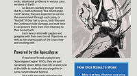 All Specials completely overhauled to remove number bonuses, replaced with narrative bonuses Added a second sheet containing all Moves and Quantum Powers A sample scenario called "Mesozoica" added (la...